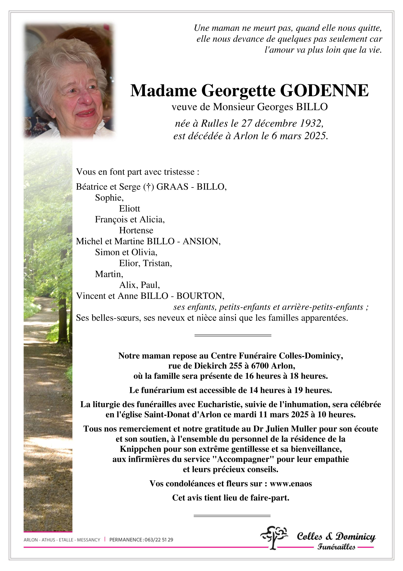 Died in Arlon (6700) on 06 March 2025 at the age of 92 years