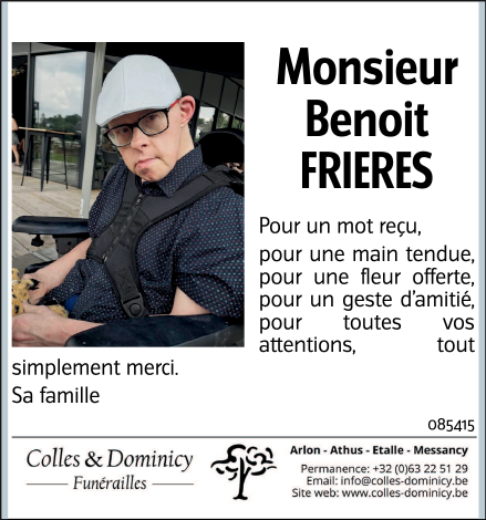 Décédé à Martelange (6630) le samedi 22 février 2025 à l'âge de 55 ans