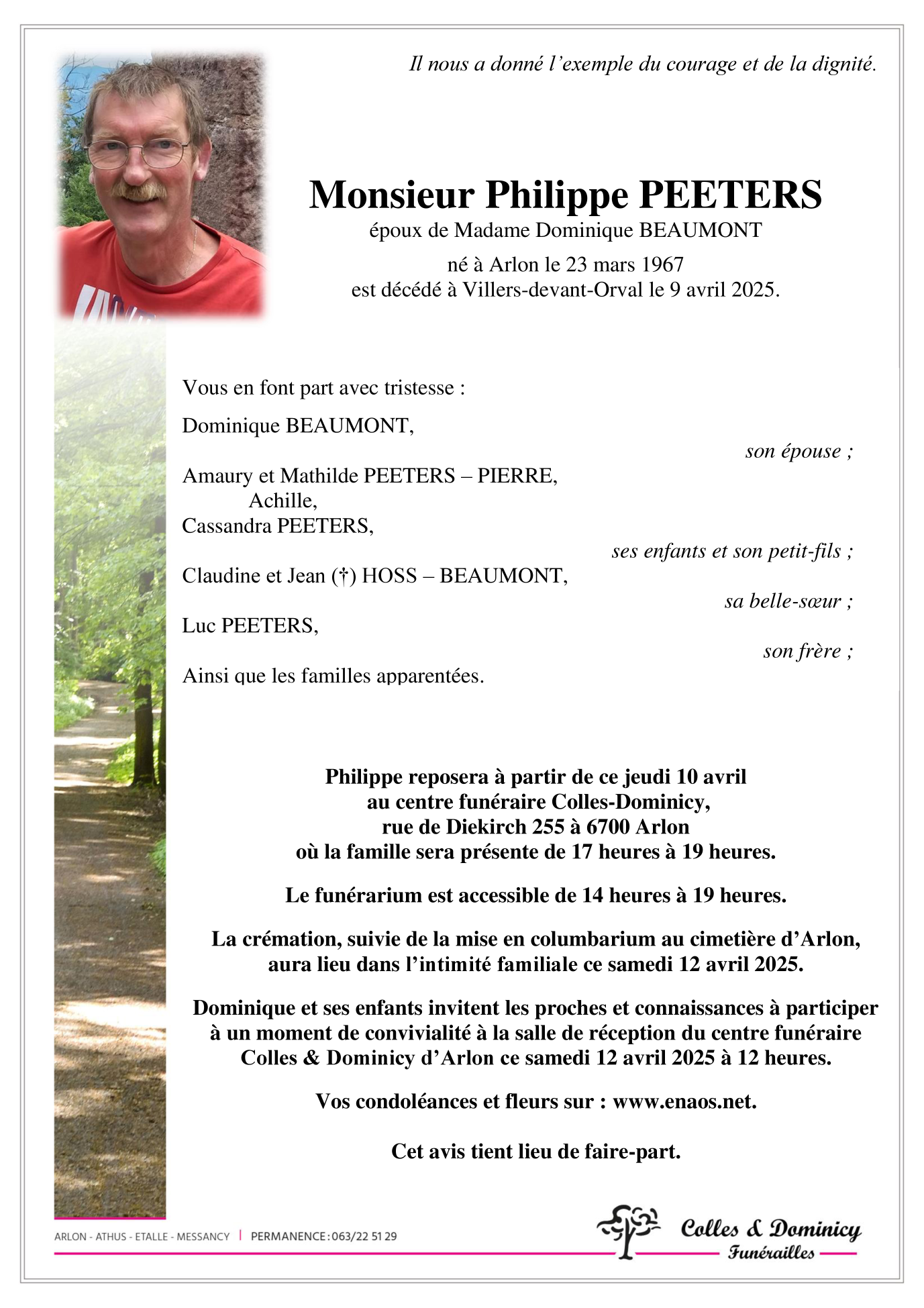 Overleden te Villers-Devant-Orval (6823) op woensdag 9 april 2025 op 58-jarige leeftijd