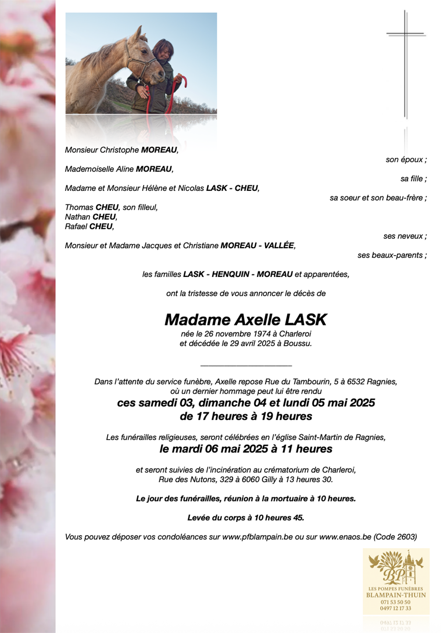 Décédée à Boussu (7300) le mardi 29 avril 2025 à l'âge de 50 ans