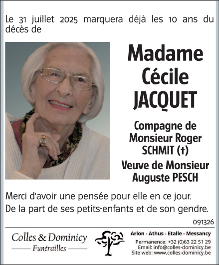 Fallecida en Arlon (6700) el viernes, 31 de julio de 2015 a la edad de 88 años