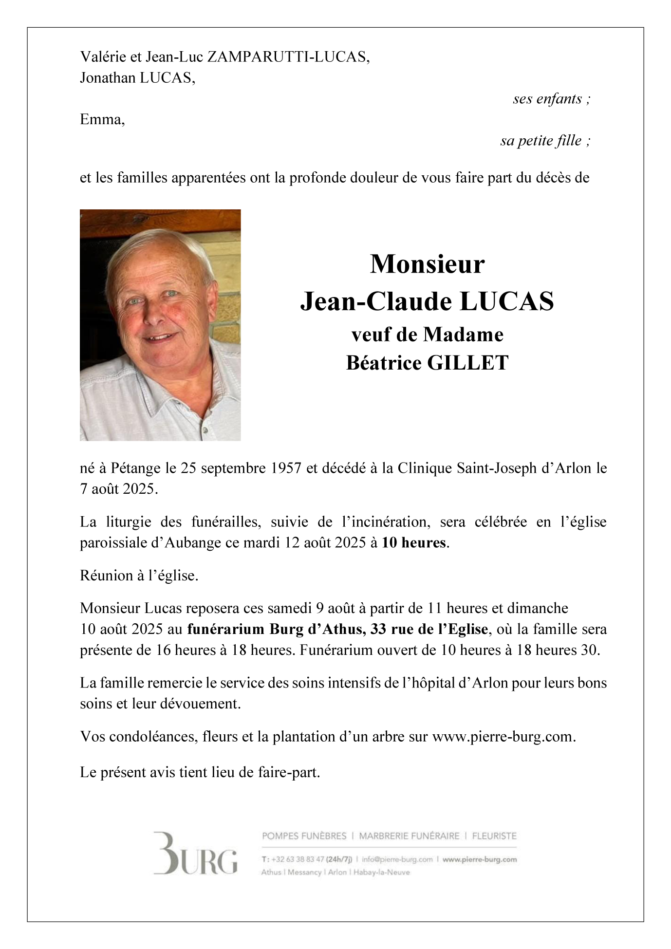 Décédé à Arlon (6700) le jeudi 7 août 2025 à l'âge de 67 ans