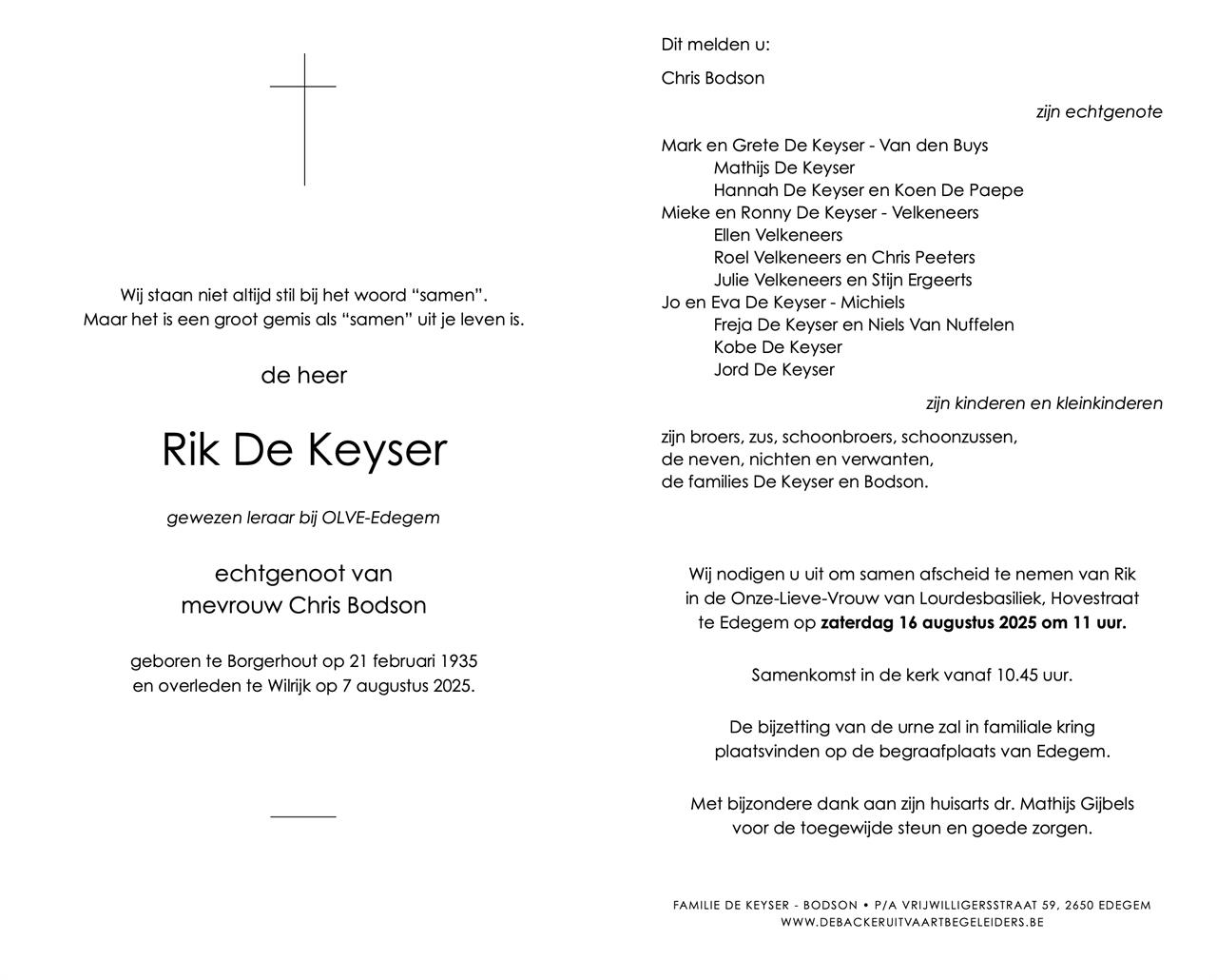 Décédé à Wilrijk (Antwerpen) (2610) le jeudi 7 août 2025 à l'âge de 90 ans