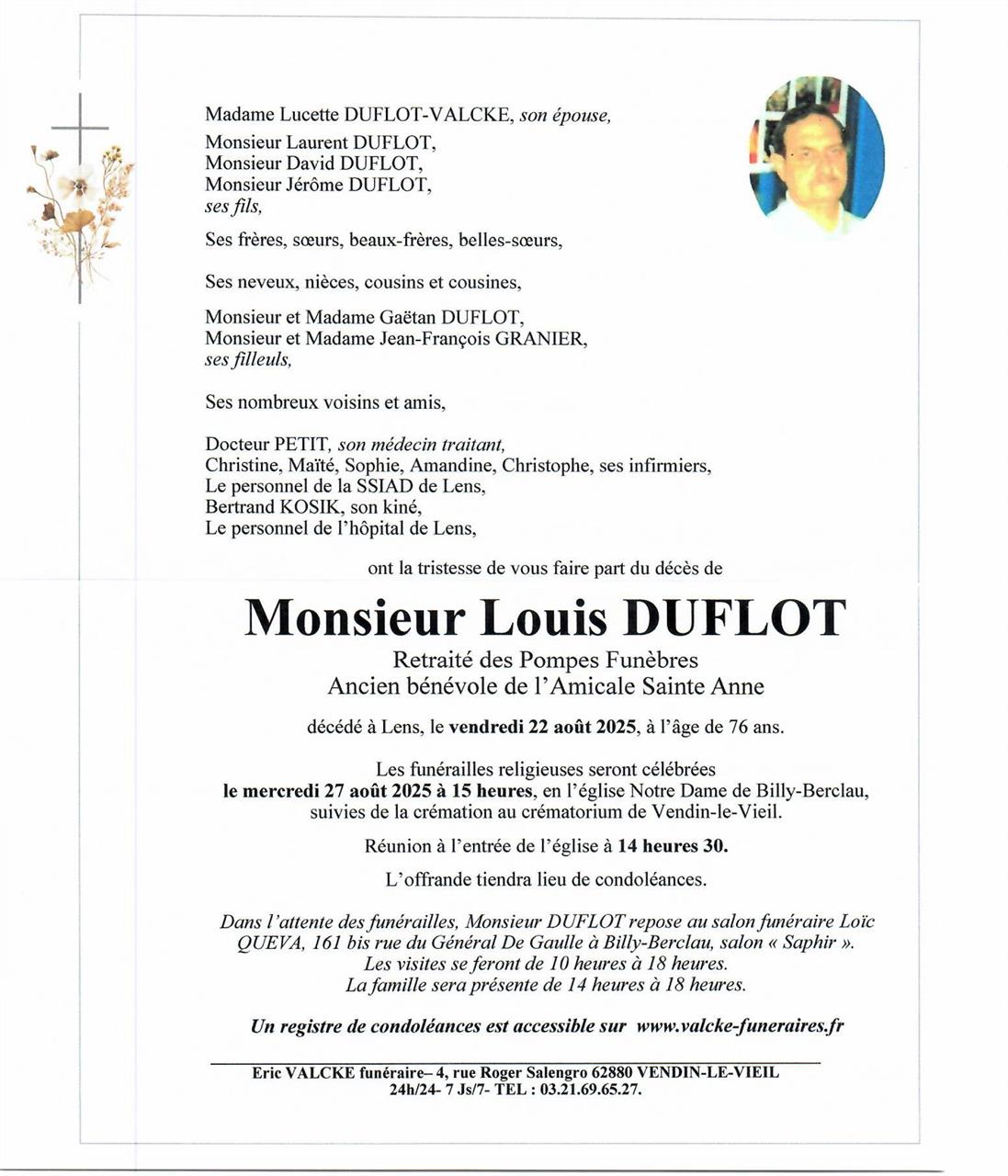 Fallecido en Lens (62300, Francia) el viernes, 22 de agosto de 2025 a la edad de 76 años