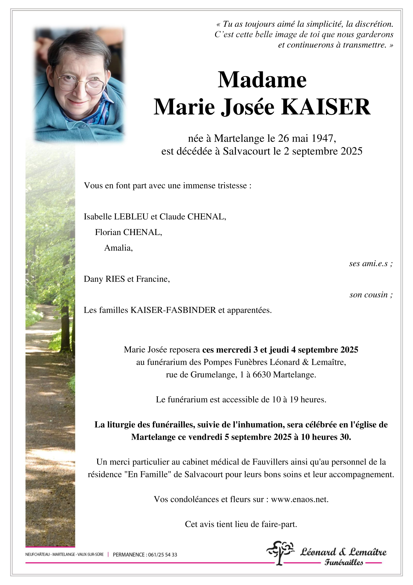 Overleden te Salvacourt (6640) op dinsdag 2 september 2025 op 78-jarige leeftijd