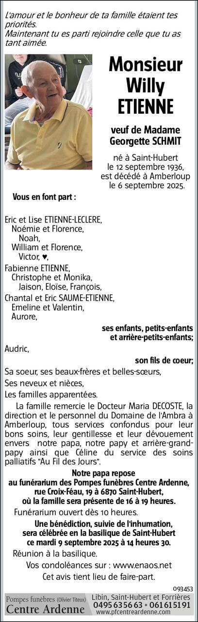 Fallecido en Sainte-Ode (6680) el sábado, 6 de septiembre de 2025 a la edad de 88 años