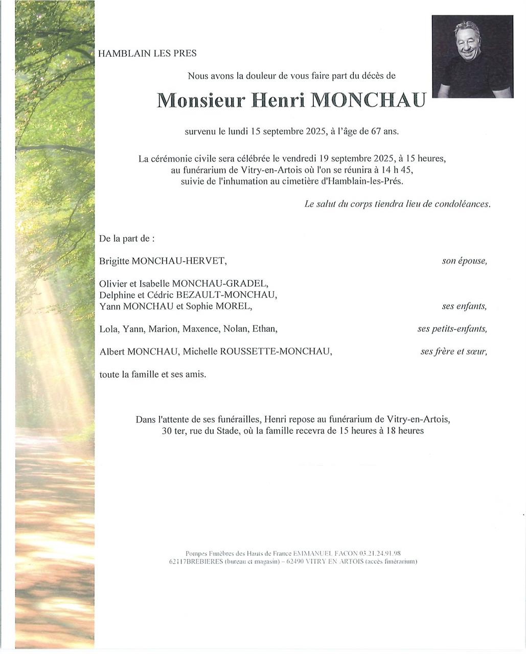 Décédé à Hamblain-les-Prés (62118, France) le lundi 15 septembre 2025 à l'âge de 67 ans