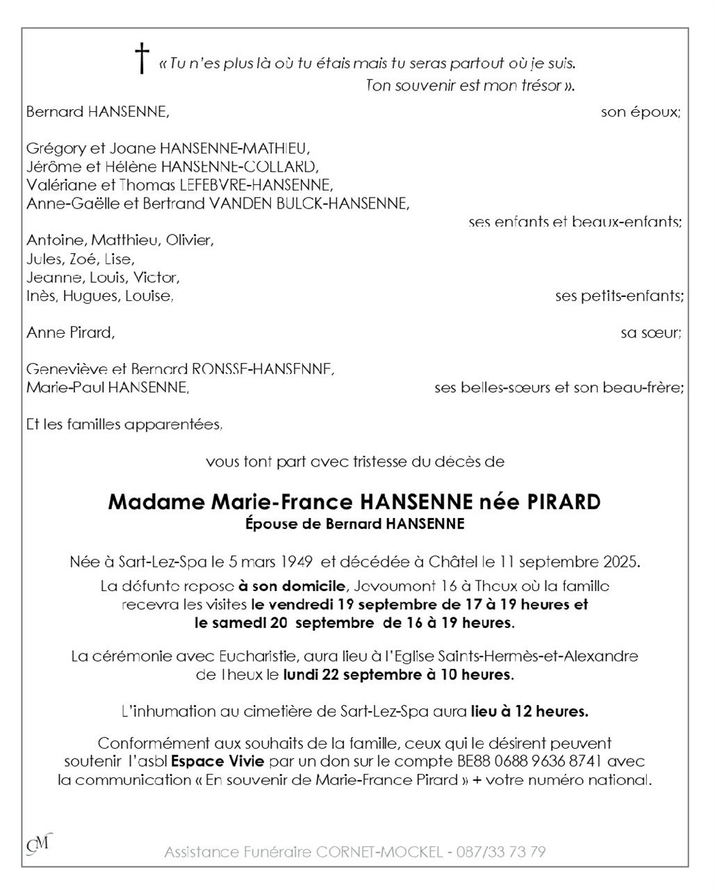 Née à Sart-lez-Spa (4845) le samedi 5 mars 1949