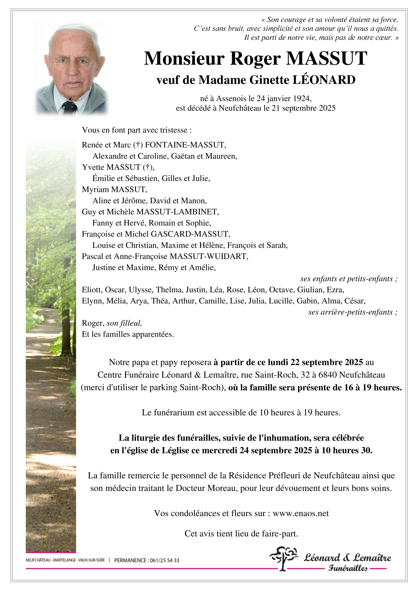 Né à Assenois (6860) le jeudi 24 janvier 1924