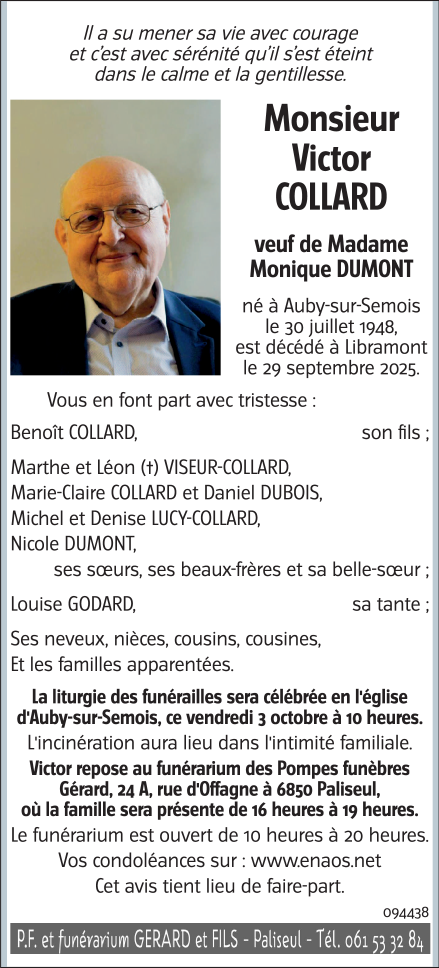 Décédé à Libramont (6800) le mardi 30 septembre 2025 à l'âge de 77 ans