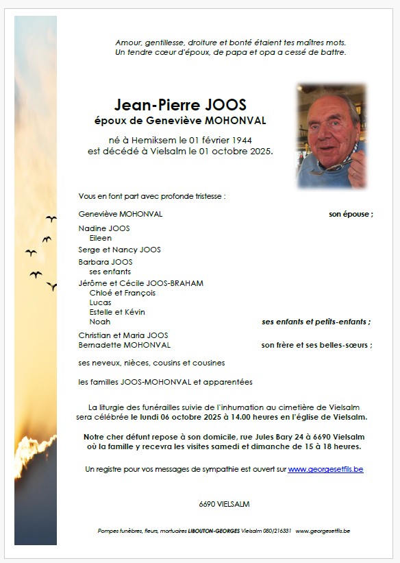 Echtgenoot van Madame Geneviève MOHONVAL
