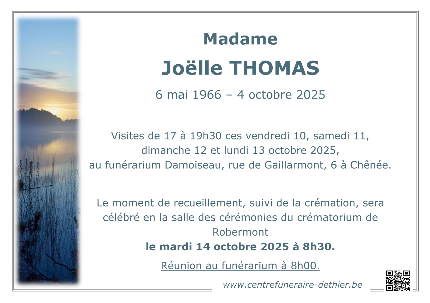 Décédée à Seraing (4100) le samedi 4 octobre 2025 à l'âge de 59 ans