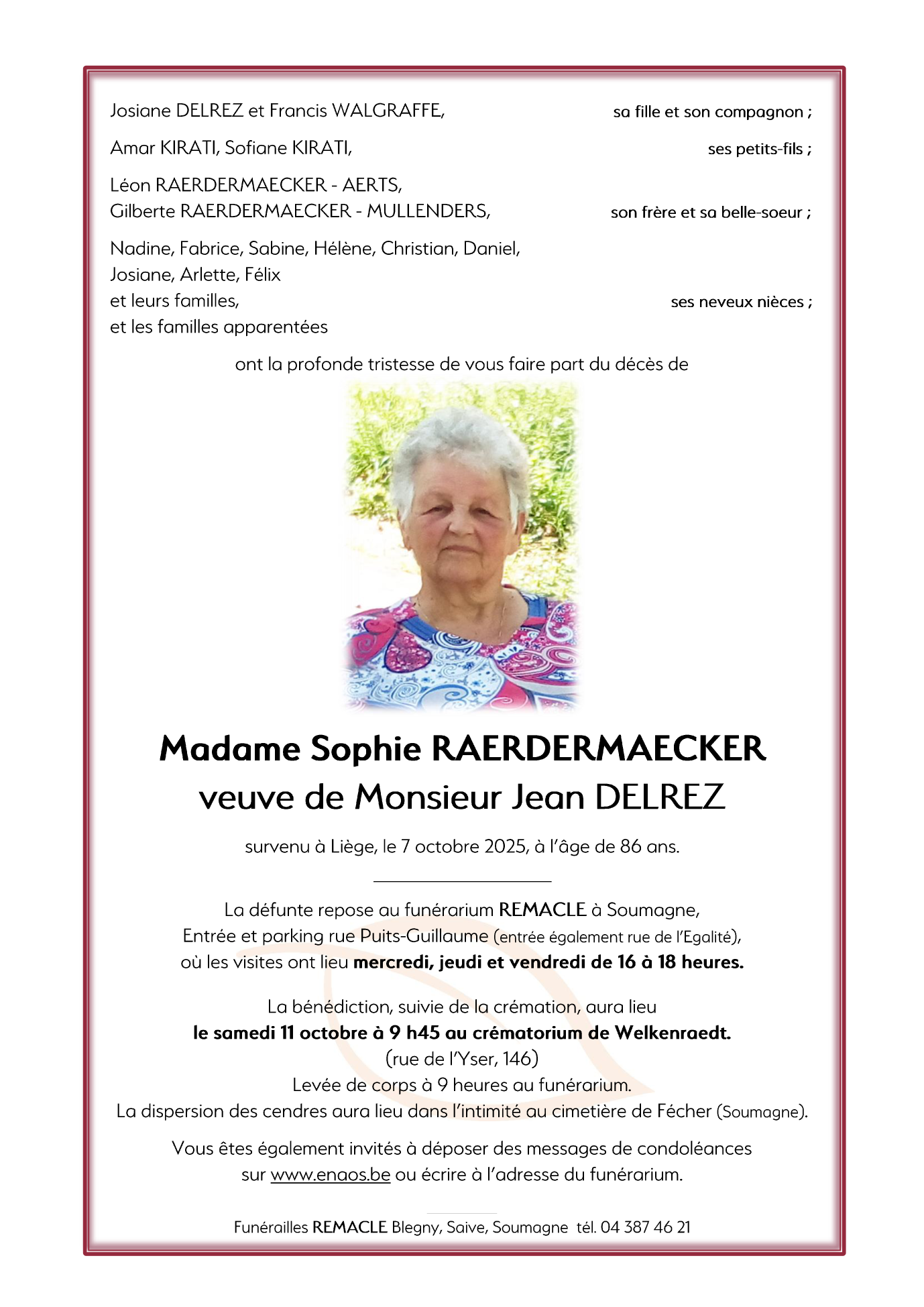 Fallecida en Liège (4000) el martes, 7 de octubre de 2025 a la edad de 86 años