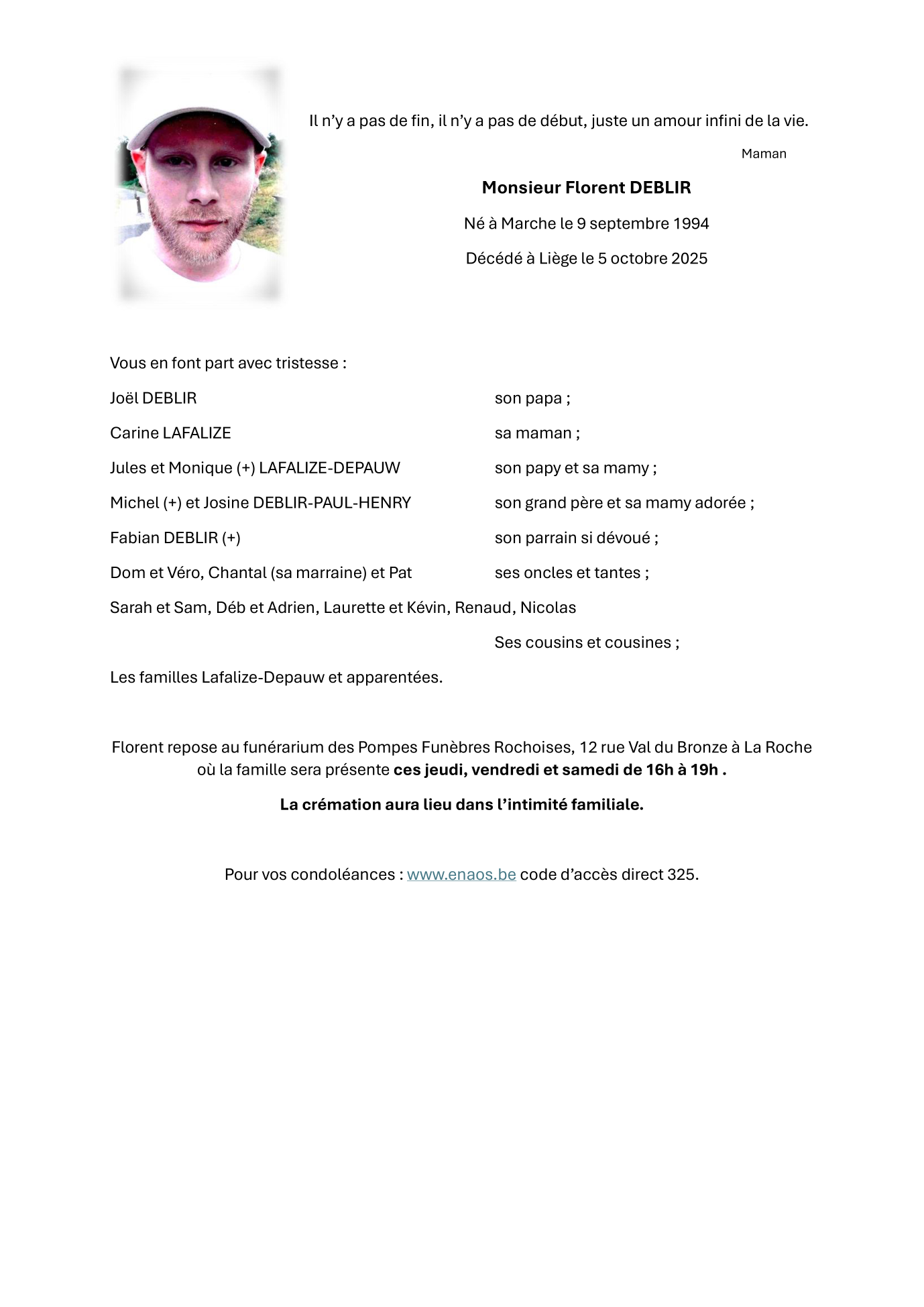Décédé à Liège (4020) le dimanche 5 octobre 2025 à l'âge de 31 ans