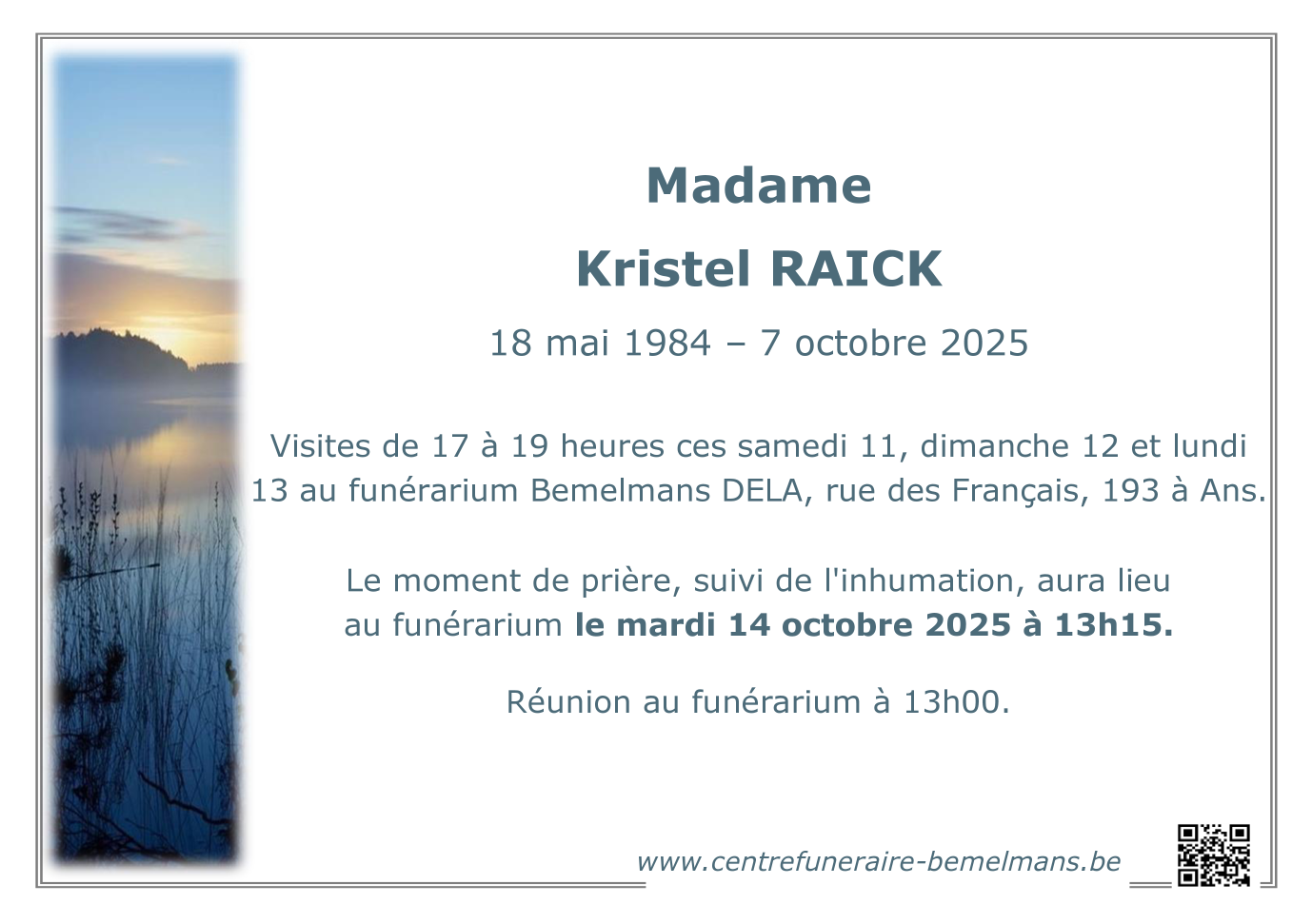Décédée à Liège (4000) le mardi 7 octobre 2025 à l'âge de 41 ans