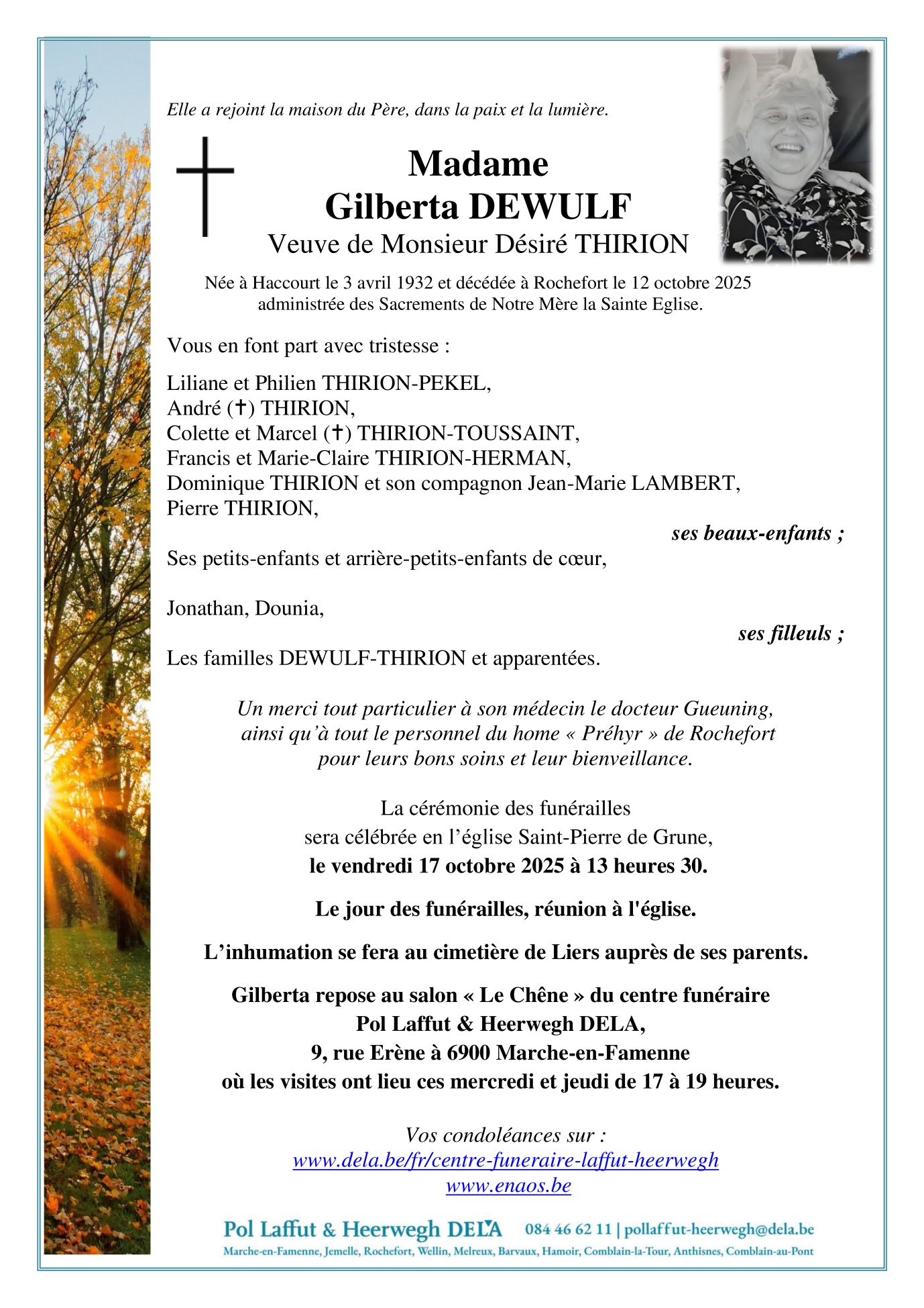 Décédée à Rochefort (5580) le dimanche 12 octobre 2025 à l'âge de 93 ans