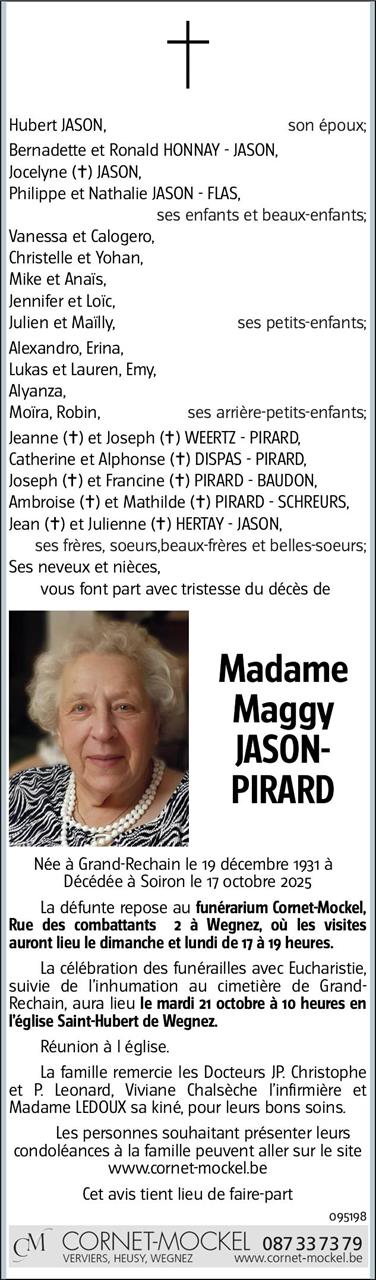 Décédée à Soiron (4861) le vendredi 17 octobre 2025 à l'âge de 93 ans
