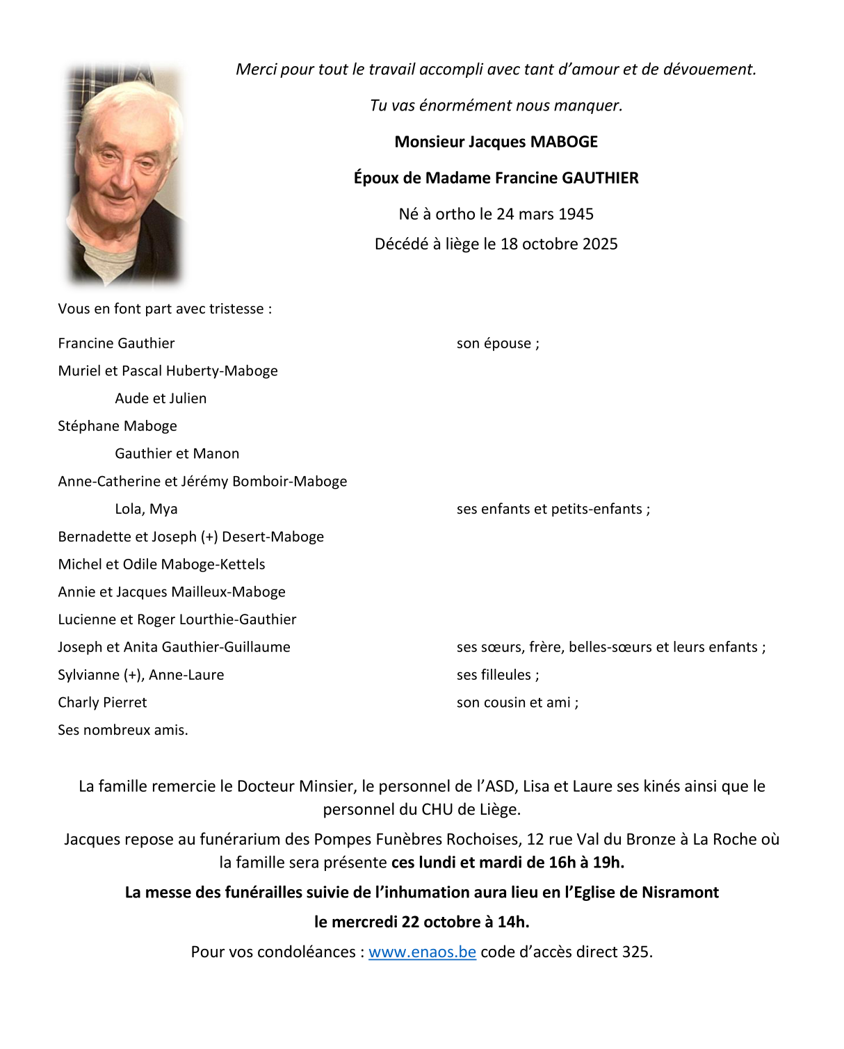 Décédé à Liège (4000) le samedi 18 octobre 2025 à l'âge de 80 ans