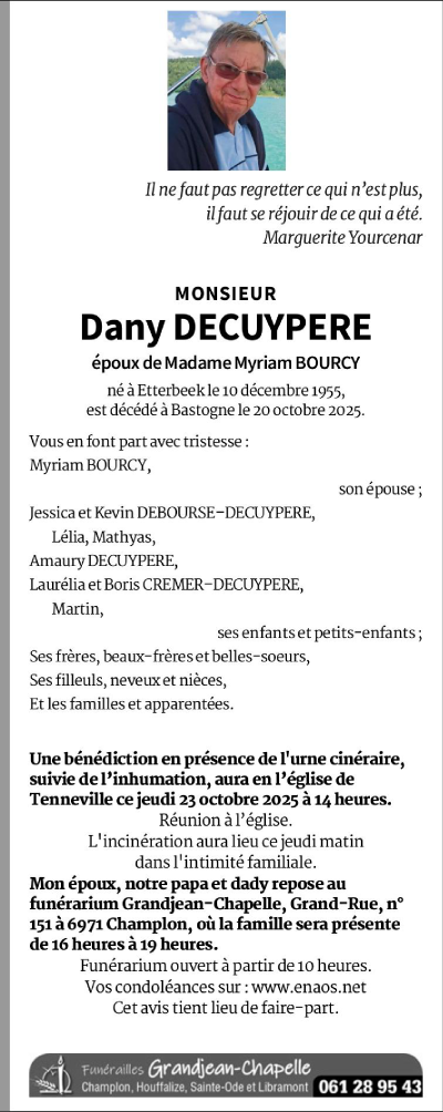 Décédé à Bastogne (6600) le lundi 20 octobre 2025 à l'âge de 69 ans