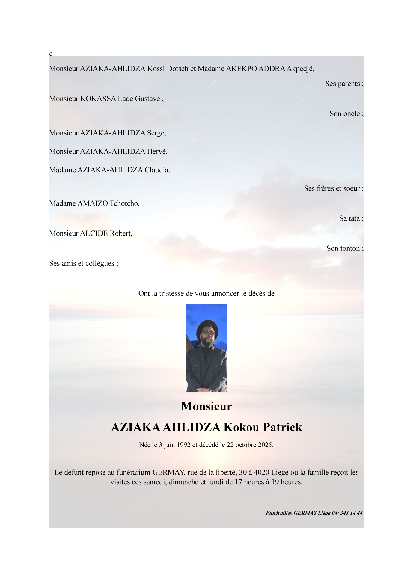Décédé à Woluwe-Saint-Lambert (1200) le mercredi 22 octobre 2025 à l'âge de 33 ans