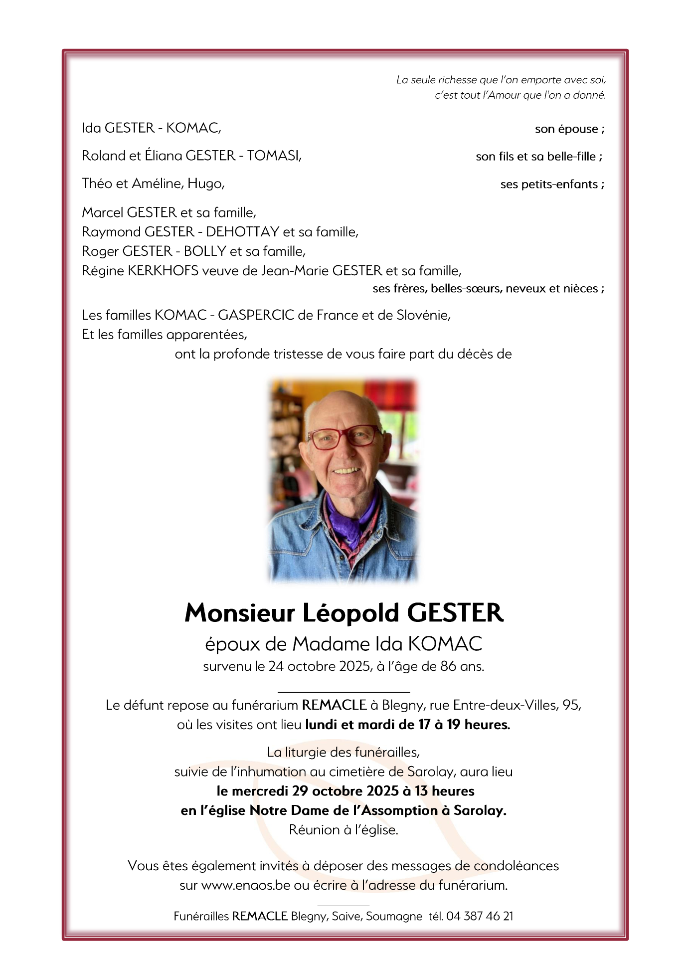 Décédé à Herstal (4040) le vendredi 24 octobre 2025 à l'âge de 86 ans