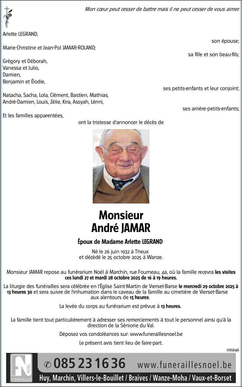 Décédé à Wanze (4520) le vendredi 24 octobre 2025 à l'âge de 93 ans
