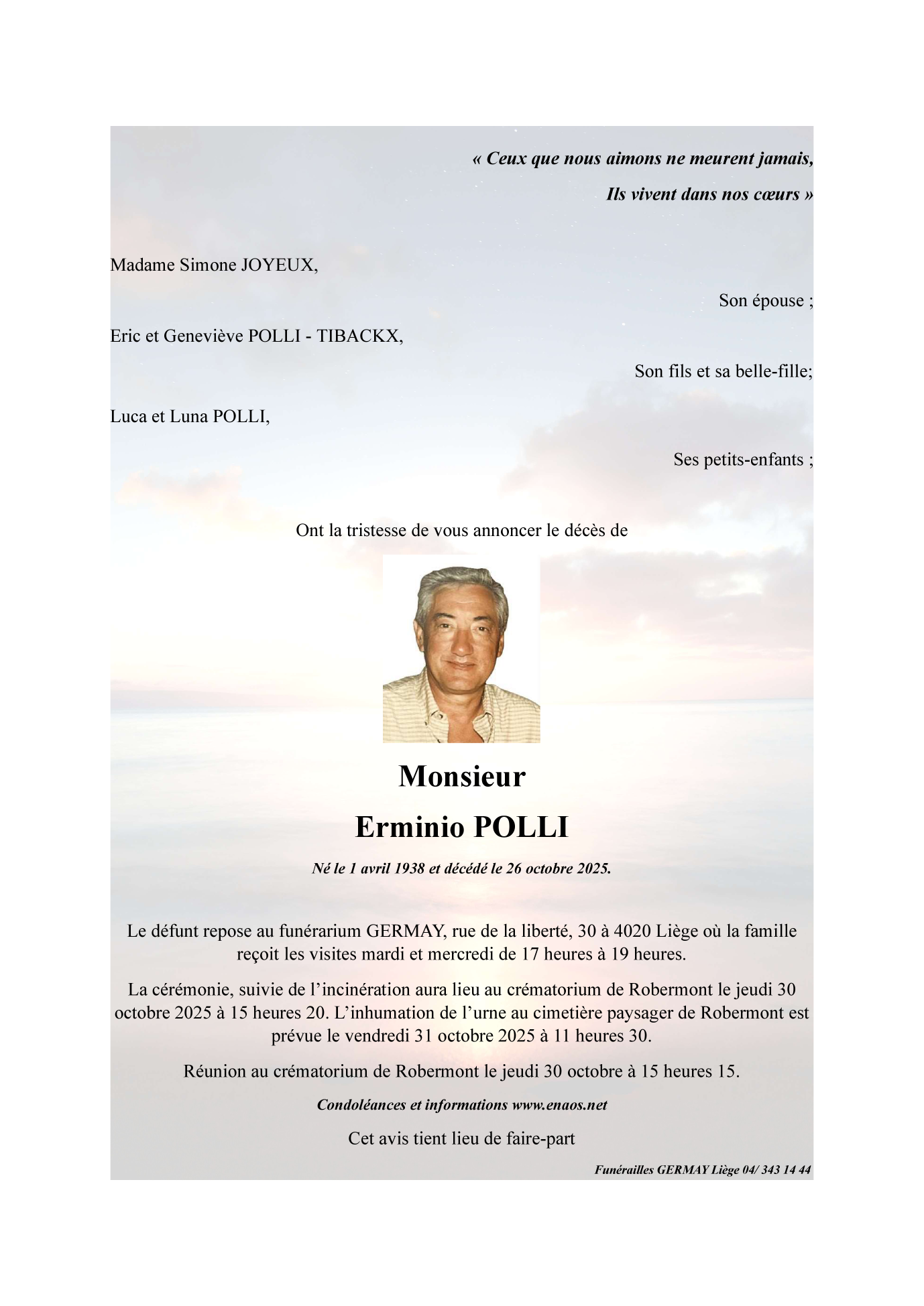 Died in Chênée (4032) on 26 October 2025 at the age of 87 years