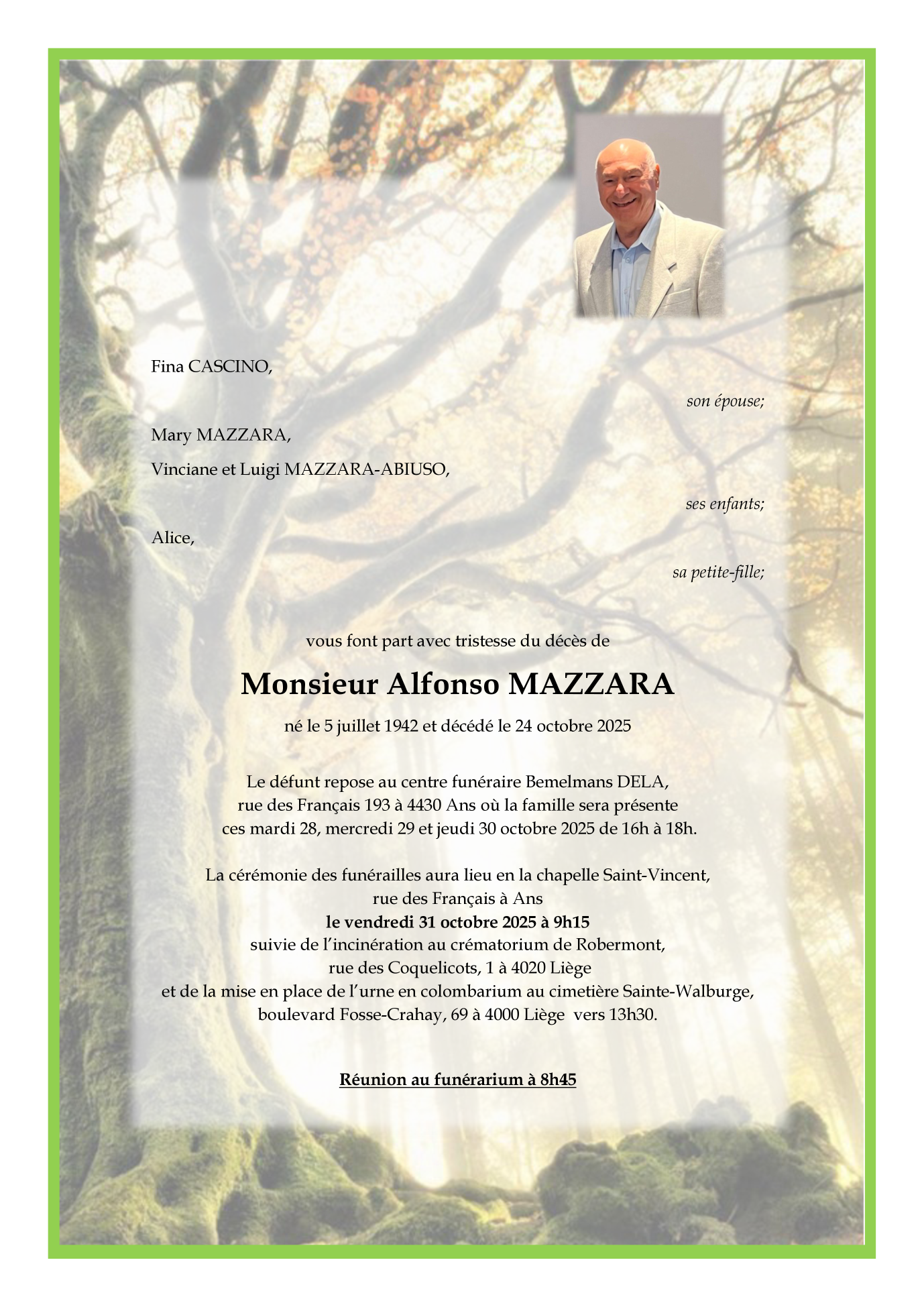Décédé à Liège (4000) le vendredi 24 octobre 2025 à l'âge de 83 ans
