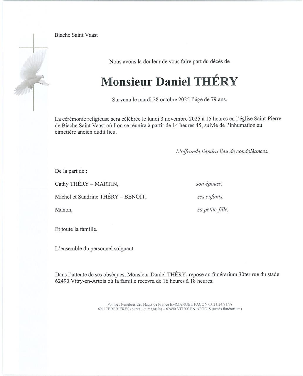 Décédé à Biache-Saint-Vaast (62118, France) le mardi 28 octobre 2025 à l'âge de 79 ans