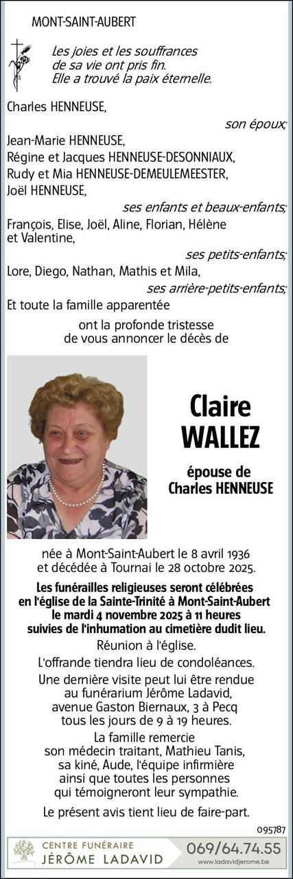 Décédée à Tournai (7500) le mardi 28 octobre 2025 à l'âge de 89 ans