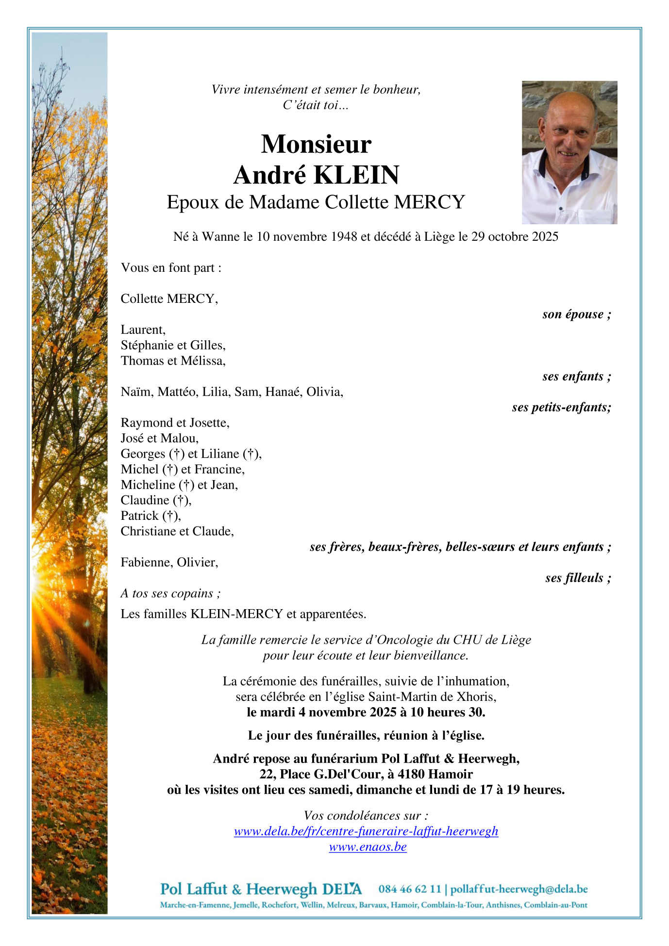 Fallecido en Liège (4000) el miércoles, 29 de octubre de 2025 a la edad de 76 años