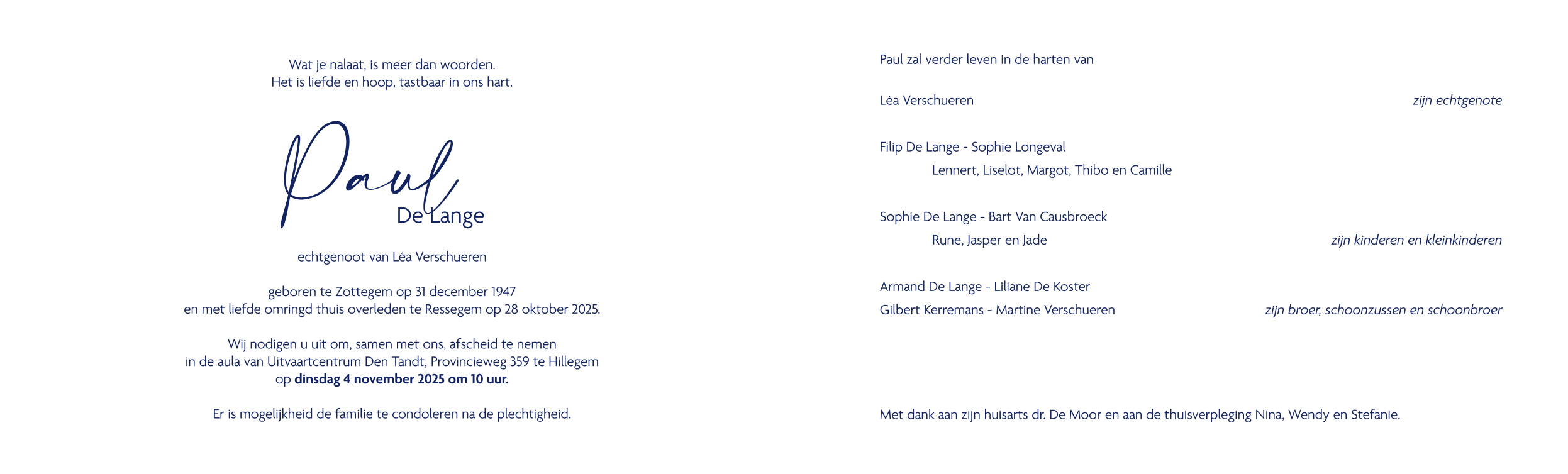 Fallecido en Ressegem (9551) el martes, 28 de octubre de 2025 a la edad de 77 años