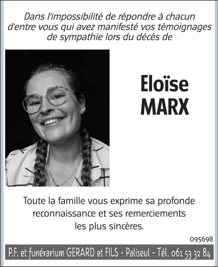 Décédée à Ochamps (6890) le vendredi 17 octobre 2025 à l'âge de 27 ans