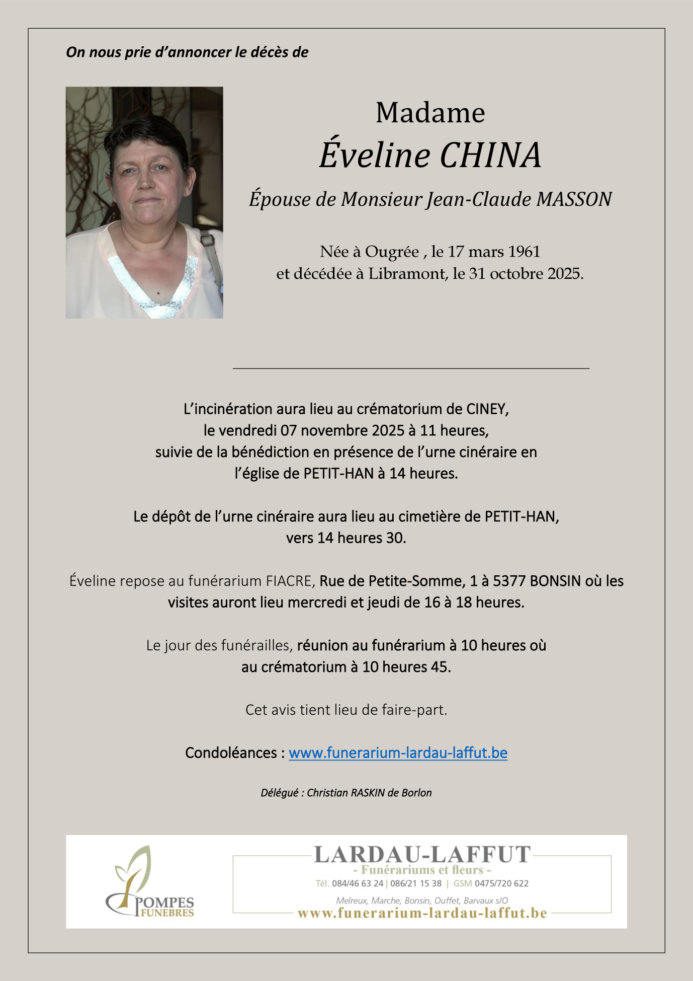 Décédée à Libramont-Chevigny (6800) le vendredi 31 octobre 2025 à l'âge de 64 ans