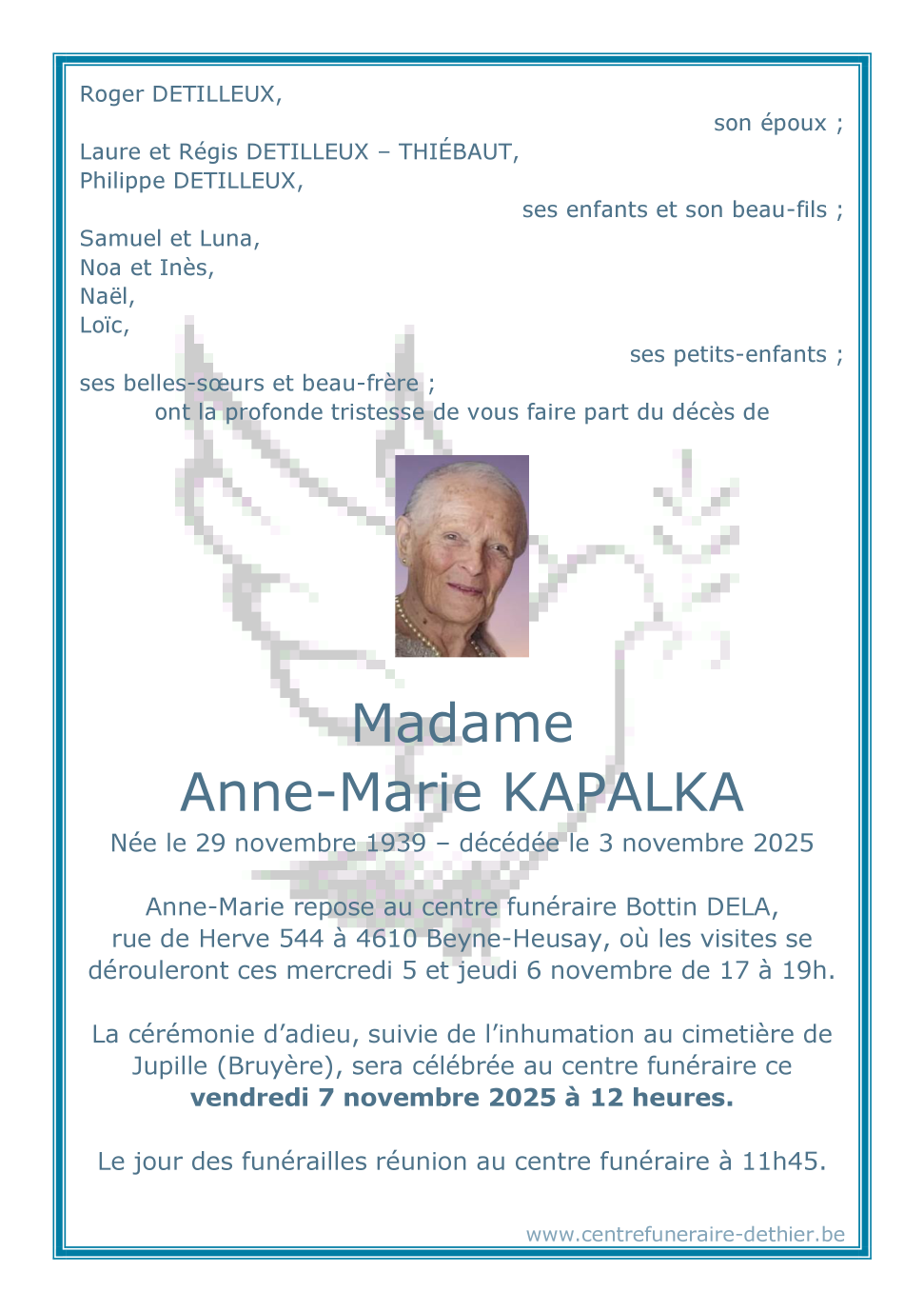 Décédée à Musson (6750) le lundi 3 novembre 2025 à l'âge de 85 ans