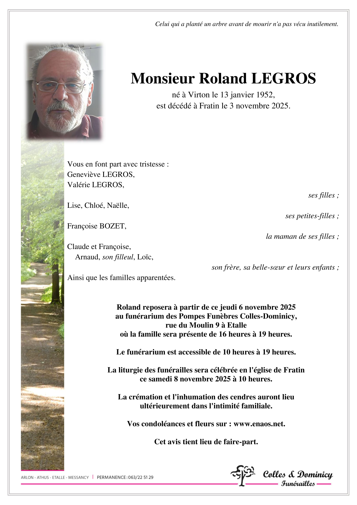 Décédé à Fratin (6740) le lundi 3 novembre 2025 à l'âge de 73 ans
