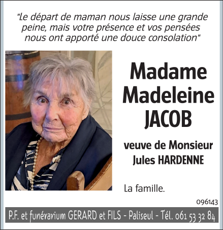 Fallecida en Libramont (6800) el domingo, 19 de octubre de 2025 a la edad de 91 años