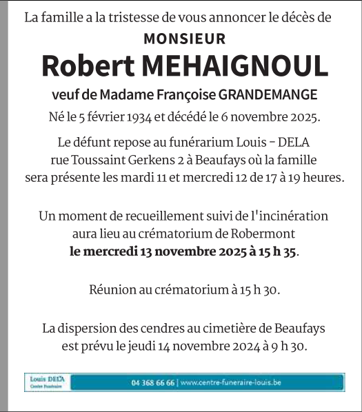 Décédé à Embourg (4053) le jeudi 6 novembre 2025 à l'âge de 91 ans