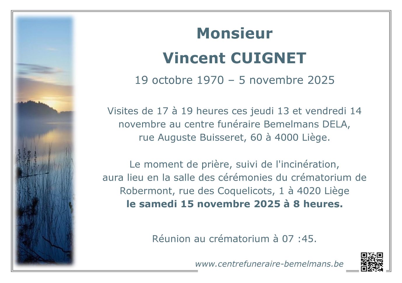 Décédé à Liège (4020) le mercredi 5 novembre 2025 à l'âge de 55 ans