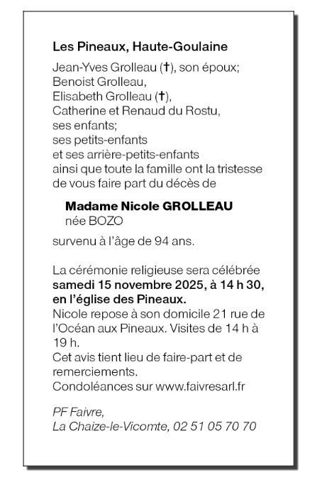 Madame Nicole GROLLEAU née BOZO