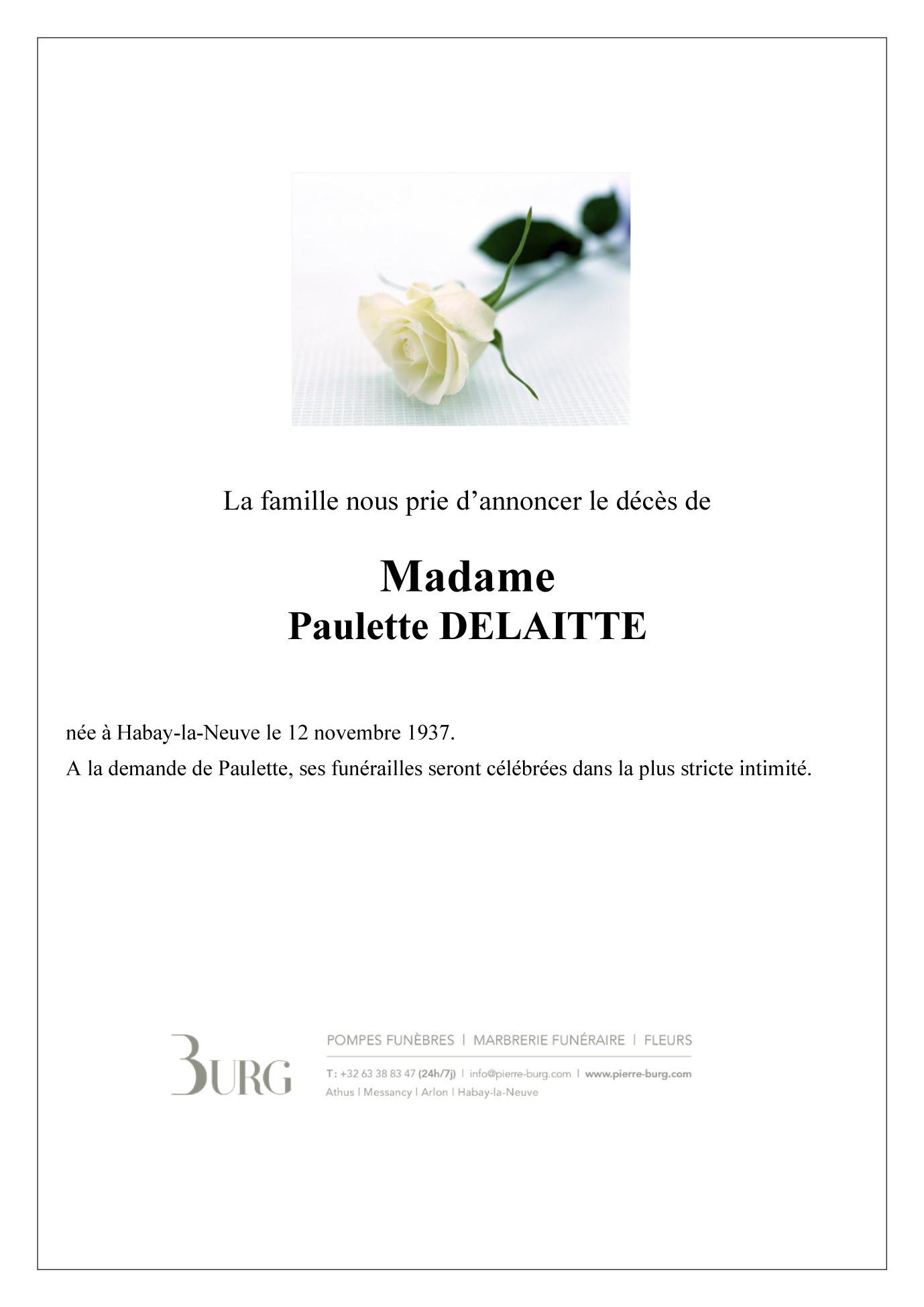 Décédée à Chanly (6921) le jeudi 13 novembre 2025 à l'âge de 88 ans