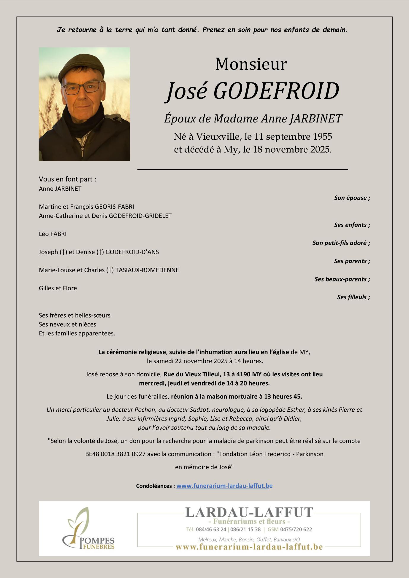 Décédé à My (4190) le mardi 18 novembre 2025 à l'âge de 70 ans