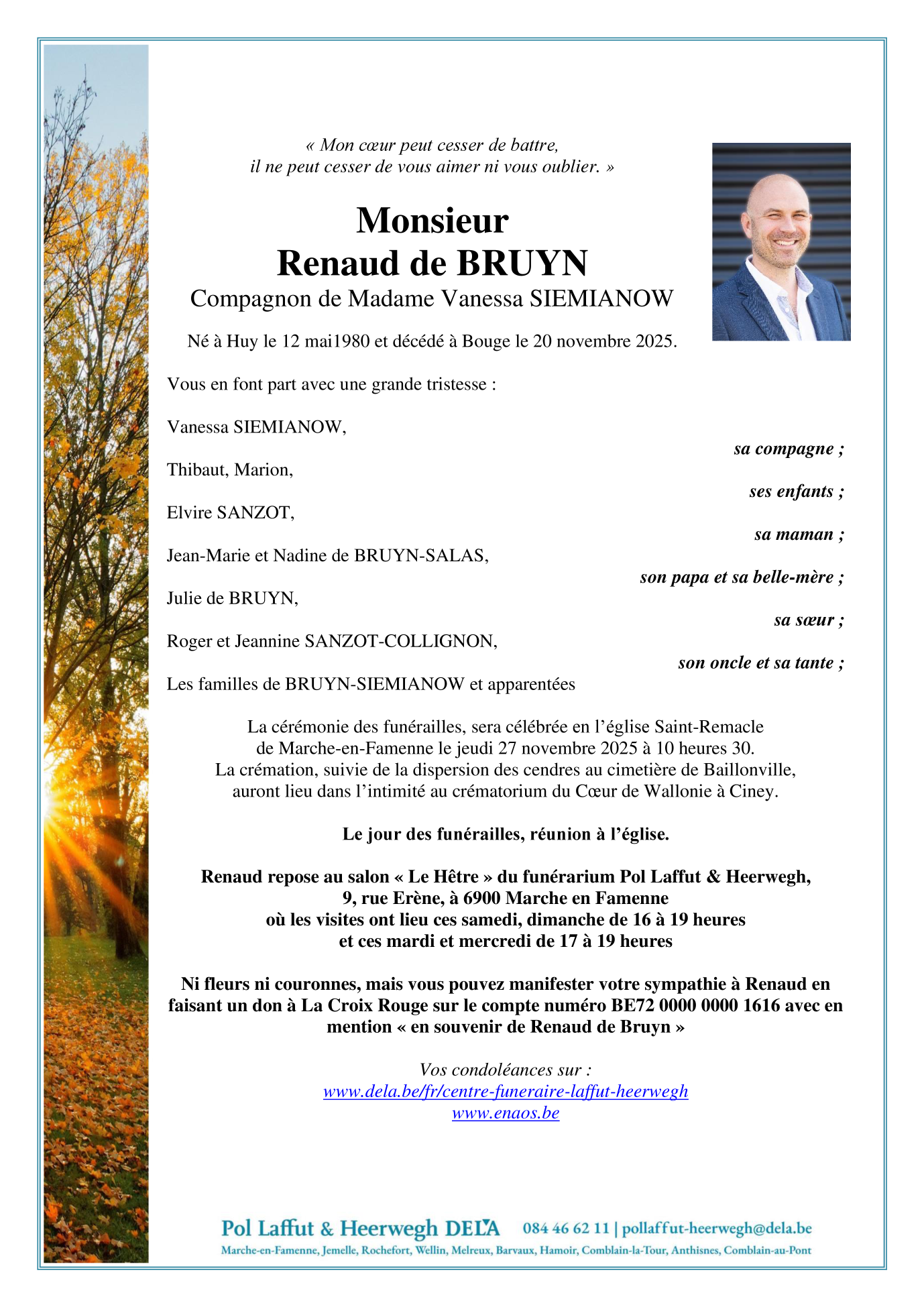 Décédé à Bouge (5004) le jeudi 20 novembre 2025 à l'âge de 45 ans