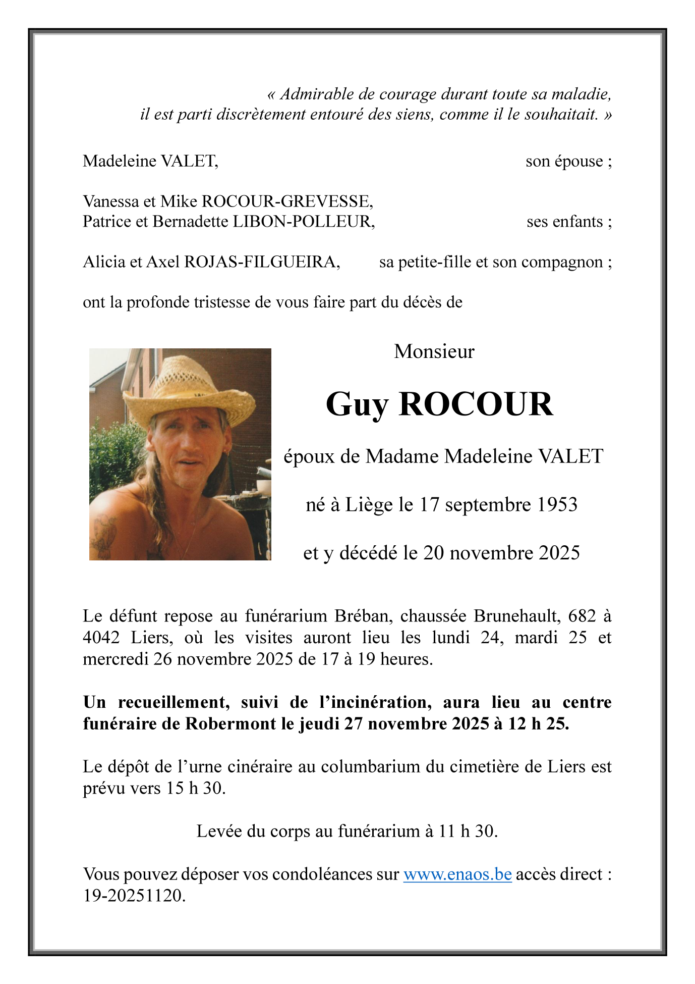 Décédé à Liège (4000) le jeudi 20 novembre 2025 à l'âge de 72 ans