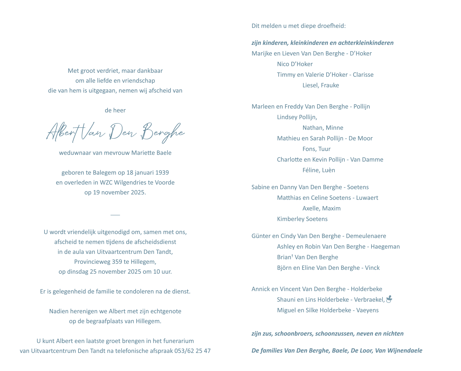 Décédé à Voorde (9400) le mercredi 19 novembre 2025 à l'âge de 86 ans
