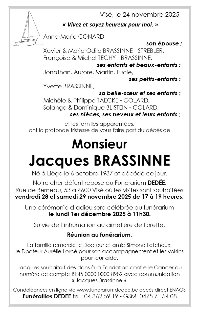 Décédé à Visé (4600) le lundi 24 novembre 2025 à l'âge de 88 ans