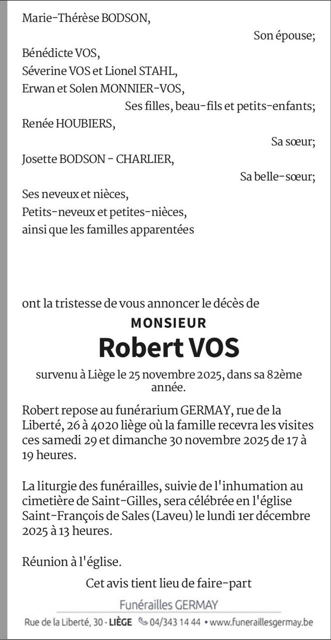 Died in Liège (4000) on 25 November 2025 at the age of 81 years