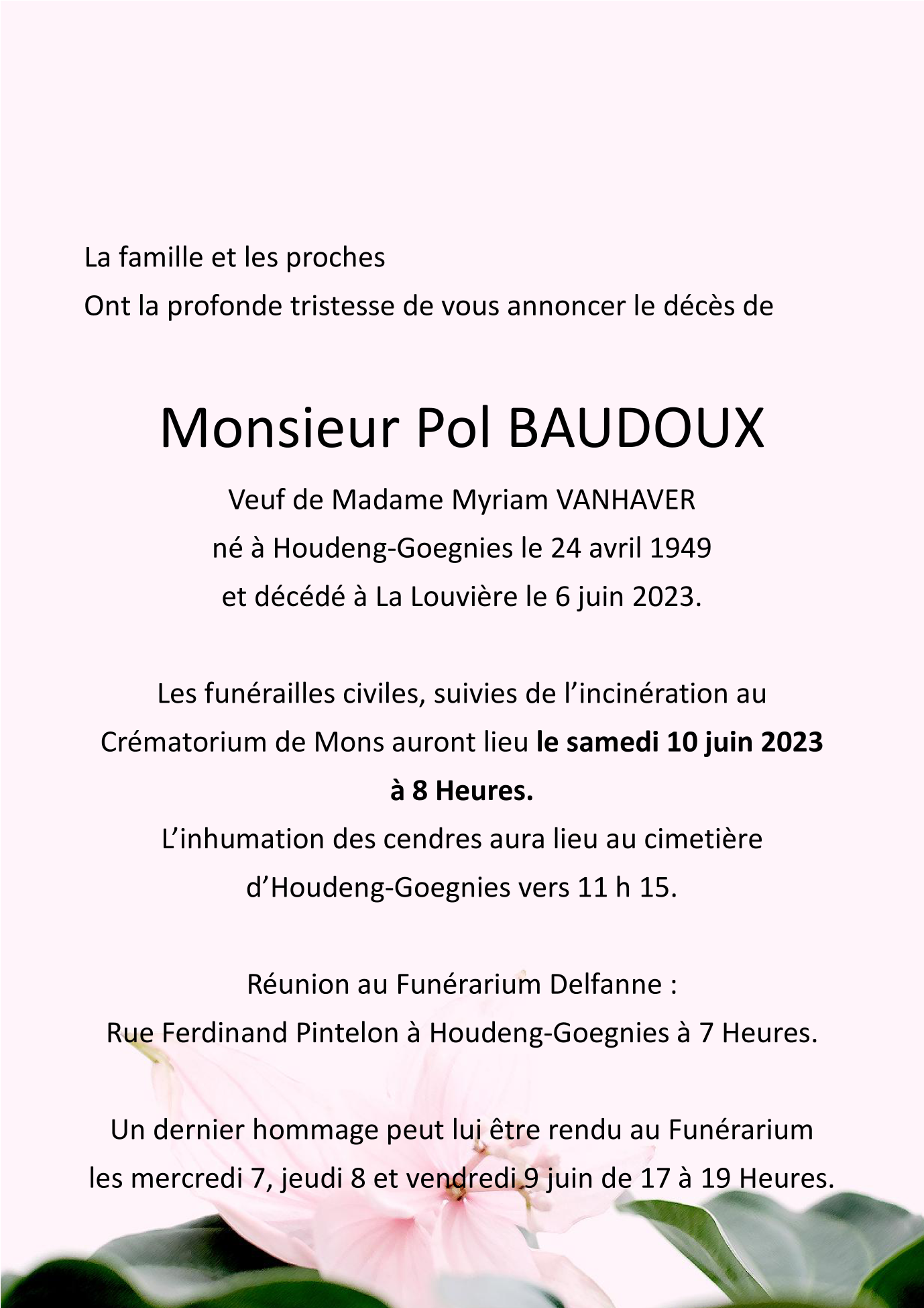 Fallecido en La Louvière (7100) el martes, 6 de junio de 2023 a la edad de 74 años