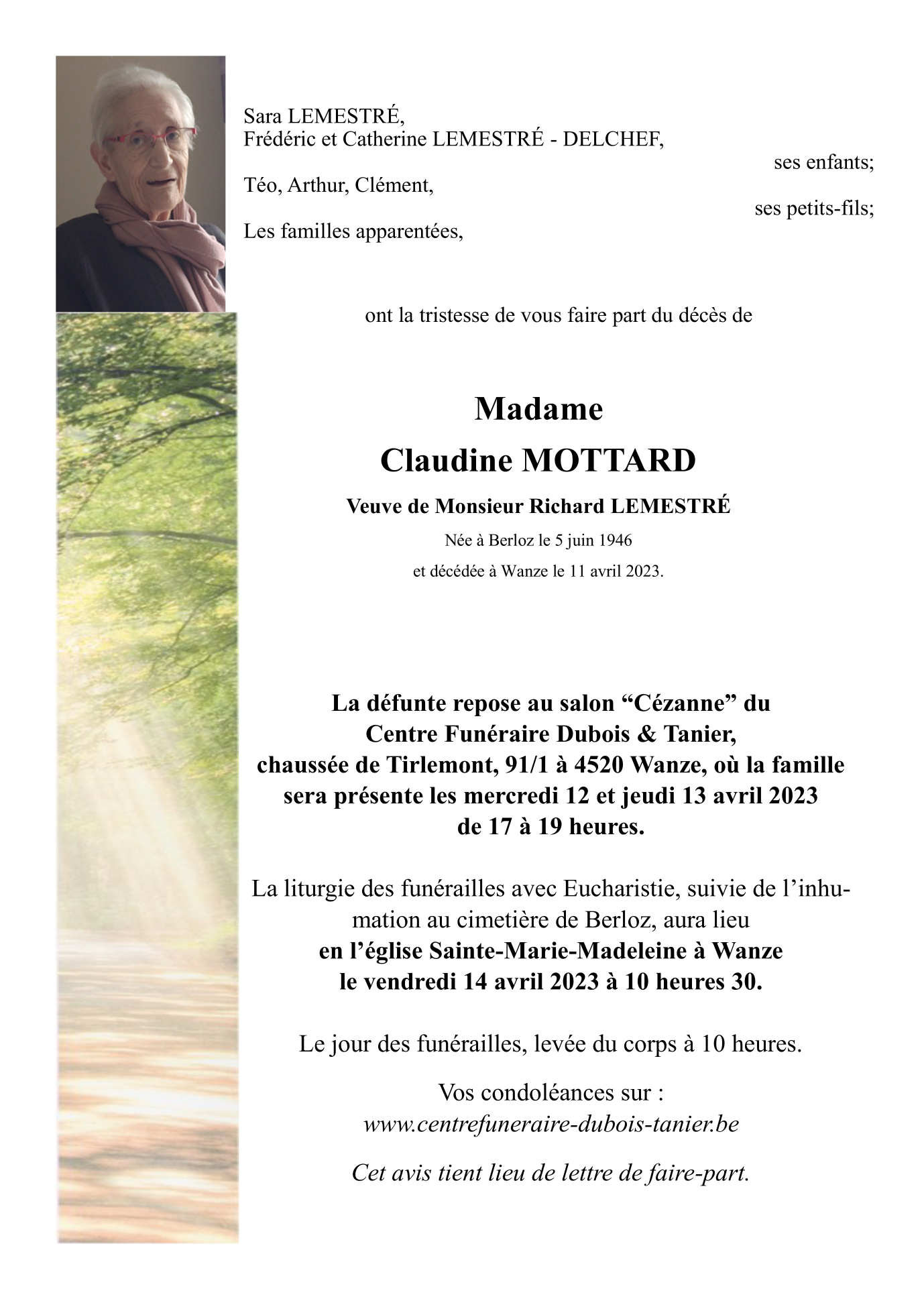 Décédée à Wanze (4520) le mardi 11 avril 2023 à l'âge de 76 ans
