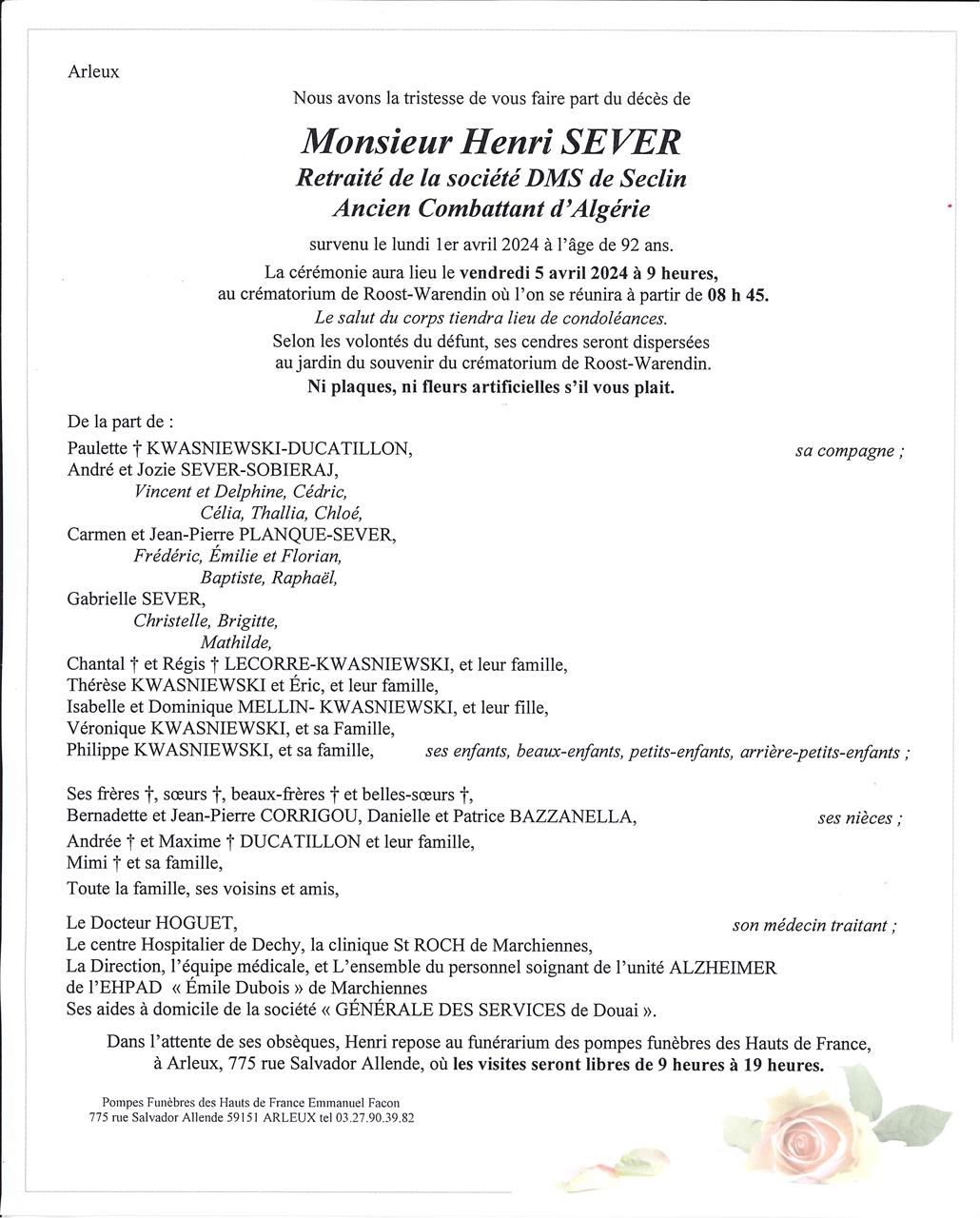 Monsieur HENRI SEVER